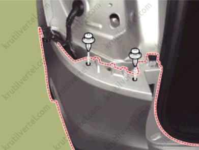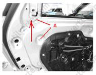 2. Відвернути гвинти кріплення та зняти обшивку задніх дверей (дверну карту) (А).