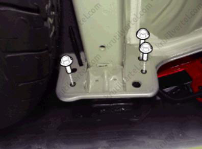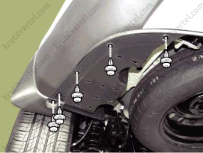 1. Відвернути гвинти кріплення та видалити монтажні кліпси, після чого зняти задній бризковик.