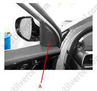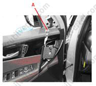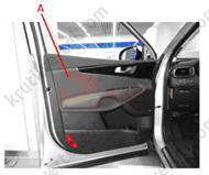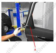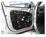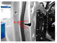 2. Видалити монтажну заглушку (А) скла передніх дверей.