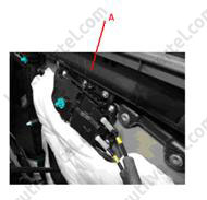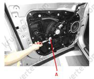 17. Відвернути болти кріплення та зняти модуль передніх дверей (А).