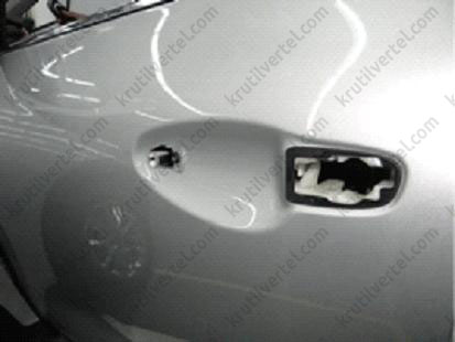 3. Утримуючи за зовнішню ручку, притиснути двері до кузова та переконатися, що замкова скоба не заважає збігу дверної панелі з кузовними поверхнями. Якщо дверний замок відрегульовано правильно, затягнути гвинти кріплення та знову перевірити правильність замикання.