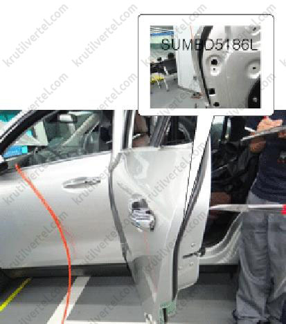 Після встановлення дверцят переконатися в тому, що її панель перебуватиме врівень з поверхнями кузова. Після цього перевірити рівномірність зазорів між дверима та кузовом спереду, ззаду та знизу. Переконатися у тому, що краї дверей та кузова паралельні один одному. Перед регулюванням замінити болти кріплення новими.
