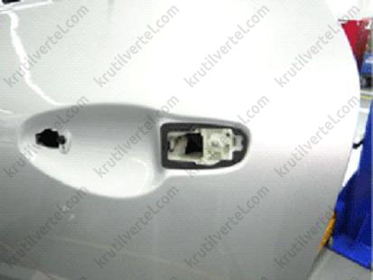12. Видалити заглушку і відвернути болт, після чого витягти кришку зовнішньої ручки дверей.