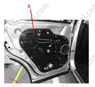 2. Видалити монтажну заглушку (А) скла задніх дверей.