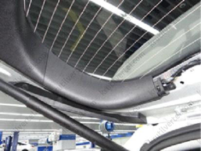 6. Від'єднати шланг форсунки омивача (А) та роз'єм верхнього стоп-сигналу (В).