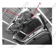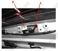3. Від'єднати шланг форсунки омивача (А) та роз'єм верхнього стоп-сигналу (В).