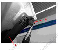7. За допомогою викрутки або вузькогубцями підчепити гніздові затискачі (А) з обох боків опорної стійки (В).