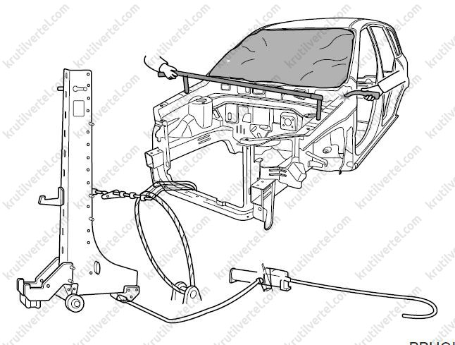 Зафіксувати кузов затискачами та домкратами для запобігання пошкодженню кузова під час роботи з ним.
