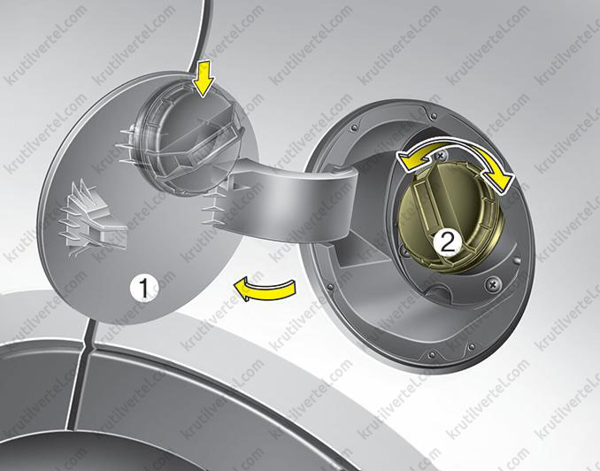 - За необхідності заміни кришки паливно-заливної горловини використовуйте тільки частини, призначені для вашого автомобіля. Використання кришки паливозаливної горловини, що не підходить, може призвести до серйозної несправності паливної системи або системи зниження токсичності відпрацьованих газів. Для отримання детальної інформації рекомендуємо звернутися до авторизованого дилера KIA.