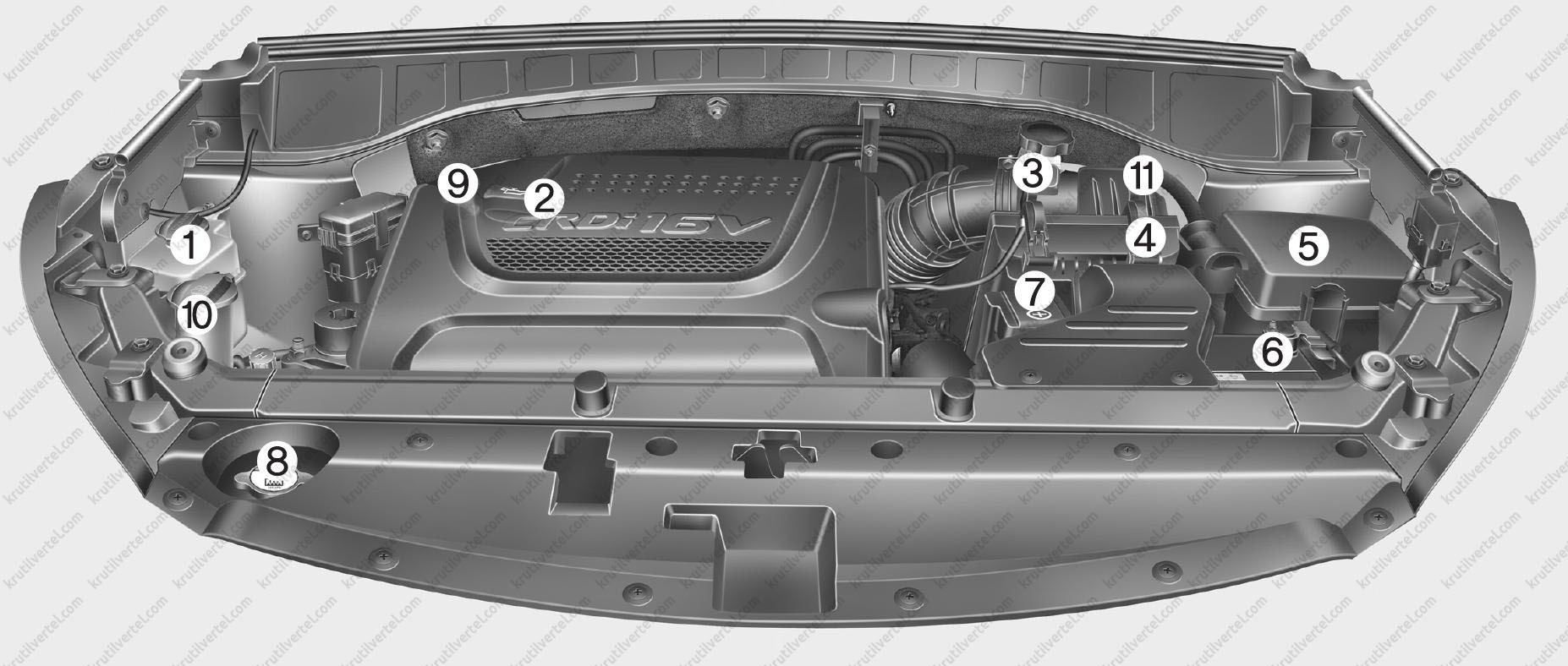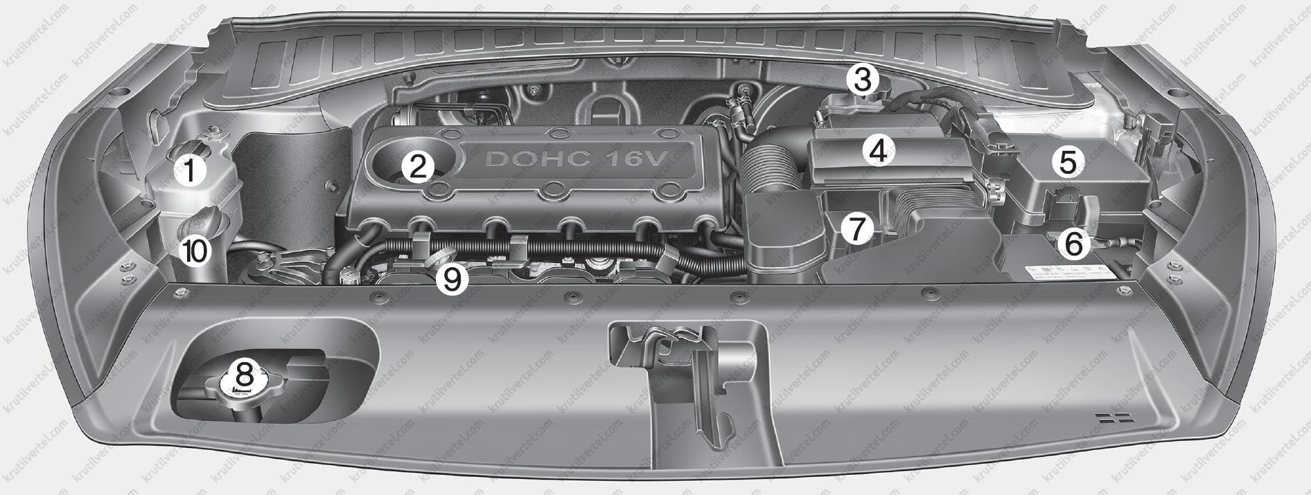 - Під час перевірки моторного відсіку неприпустимо використання відкритого вогню. Паливо, рідина омивача та ін. є легкозаймистими рідинами і можуть стати причиною пожежі.