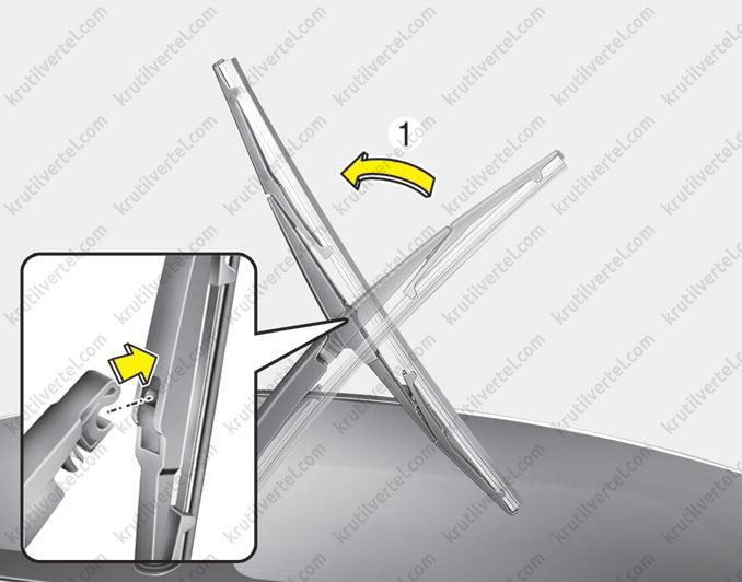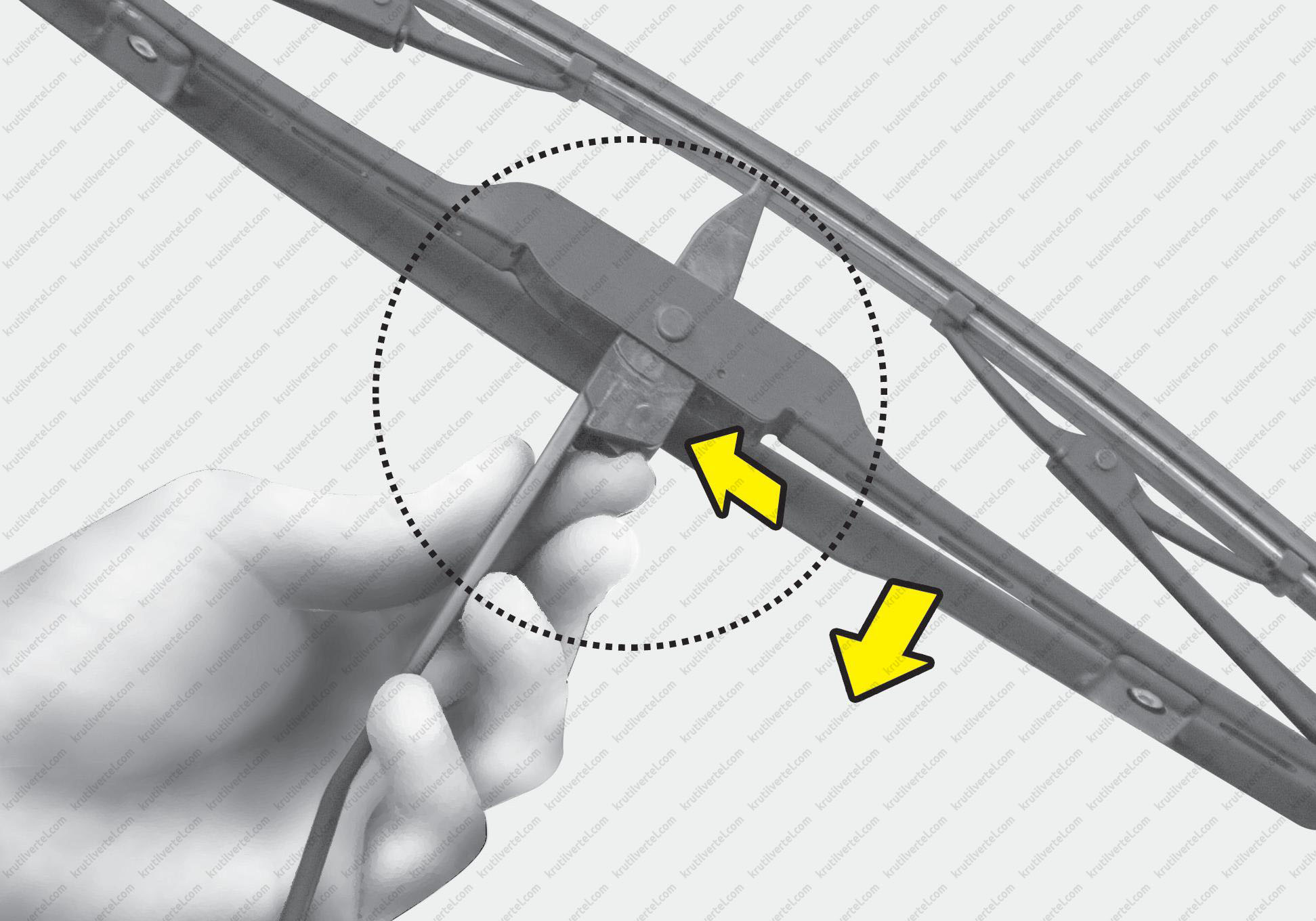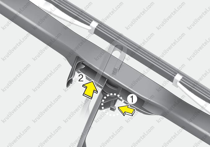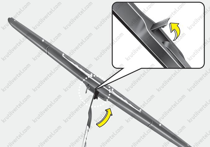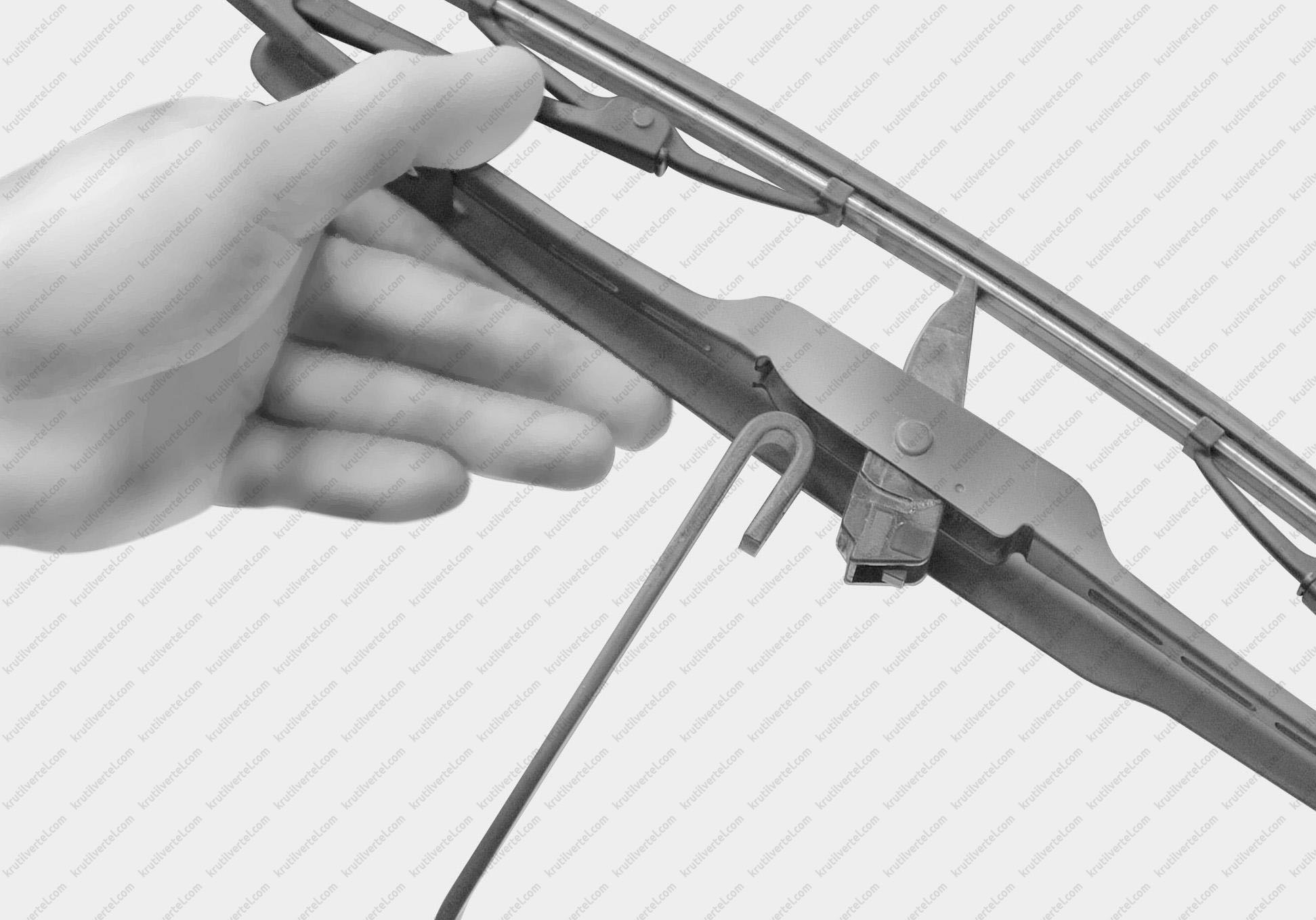 1. Підніміть важіль склоочисника та поверніть вузол щітки, щоб отримати доступ до клямки.