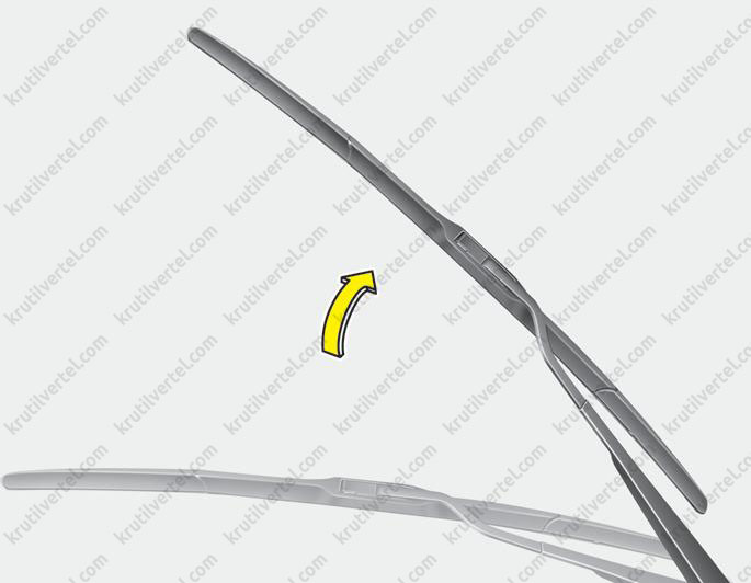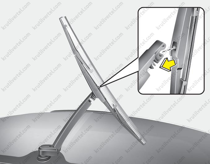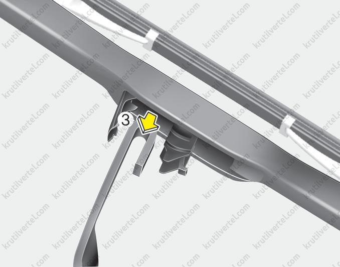 3. Перевірте, чи міцно встановлена щітка, трохи потягнувши її. Для запобігання пошкодженню важелів склоочисників або інших компонентів при заміні щіток склоочисників рекомендуємо доручити виконання цієї операції авторизованому дилеру KIA.