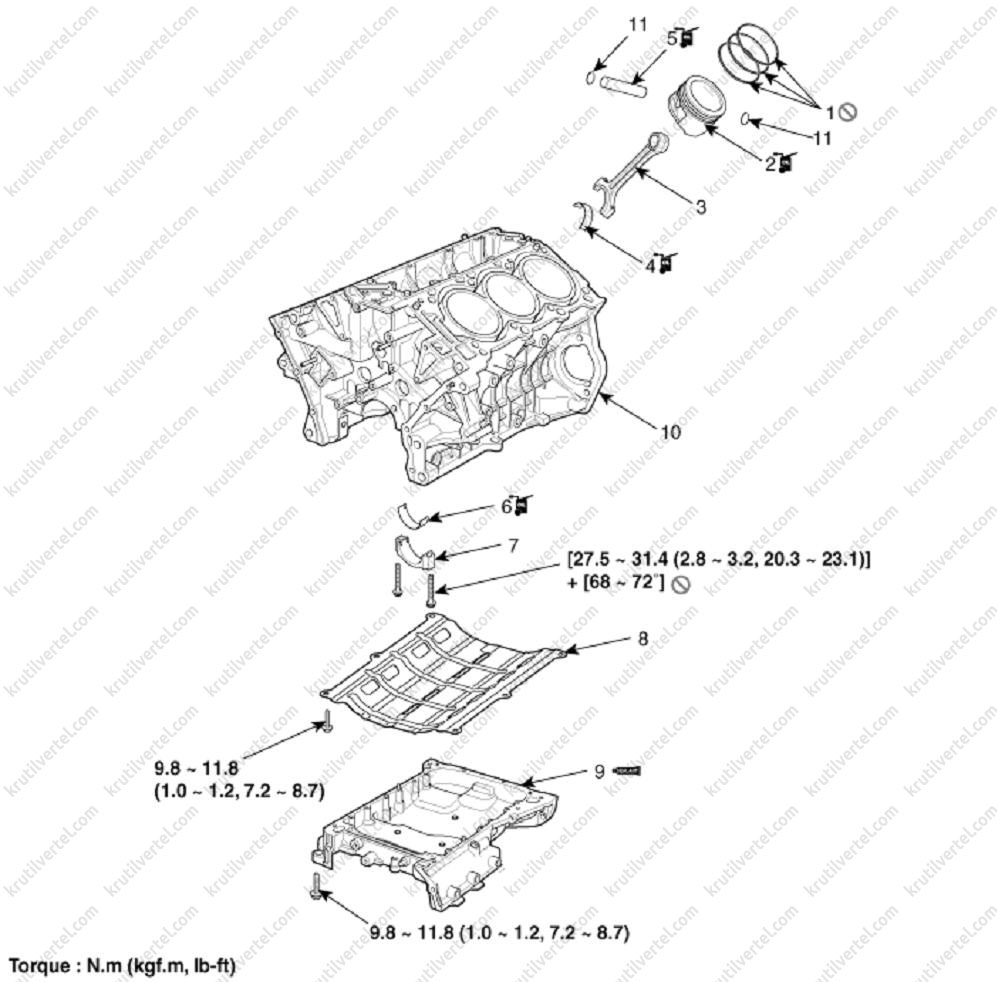 №№ 17~24 Н·м: 29.4 ~ 31.4 Н·м.