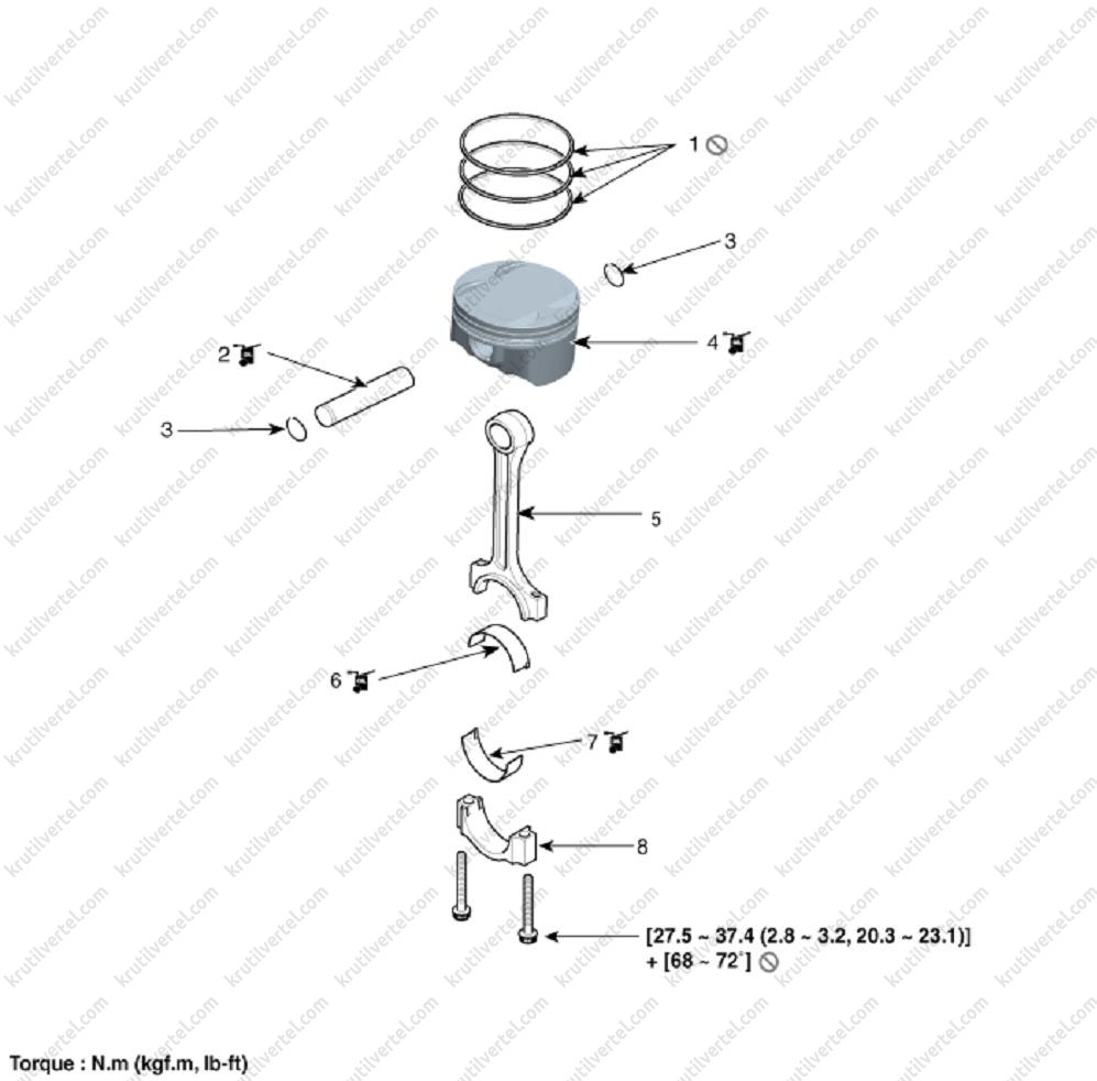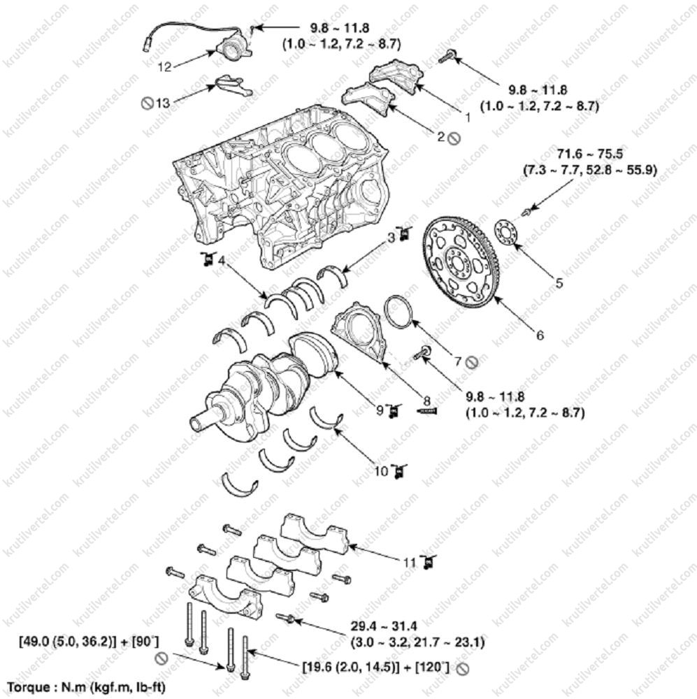 №№ 1~8: 49.0 Н·м + 90°.