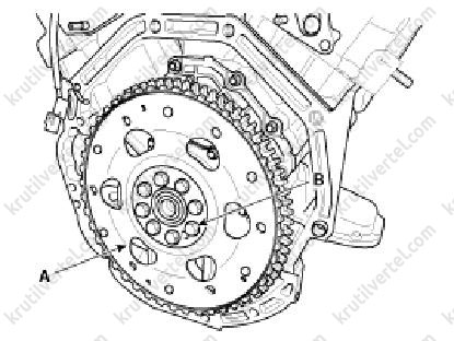 - Провернути шків колінчастого валу так, щоб встановити поршень першого циліндра в положення верхньої мертвої точки (ВМТ) ходу стиснення.