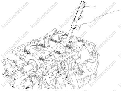 5. Встановити болти кришок корінних підшипників.