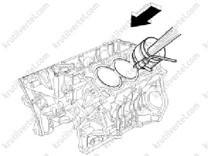 - Виштовхнути поршні з шатунами та верхніми шатунними вкладишами через верх блоку циліндрів.