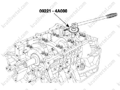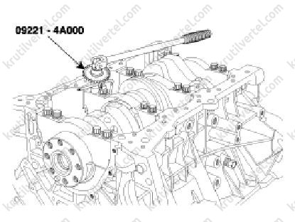 Використовувати спеціальний пристрій (09221-4A000) для дотягування болтів кришок корінних підшипників на певний кут.