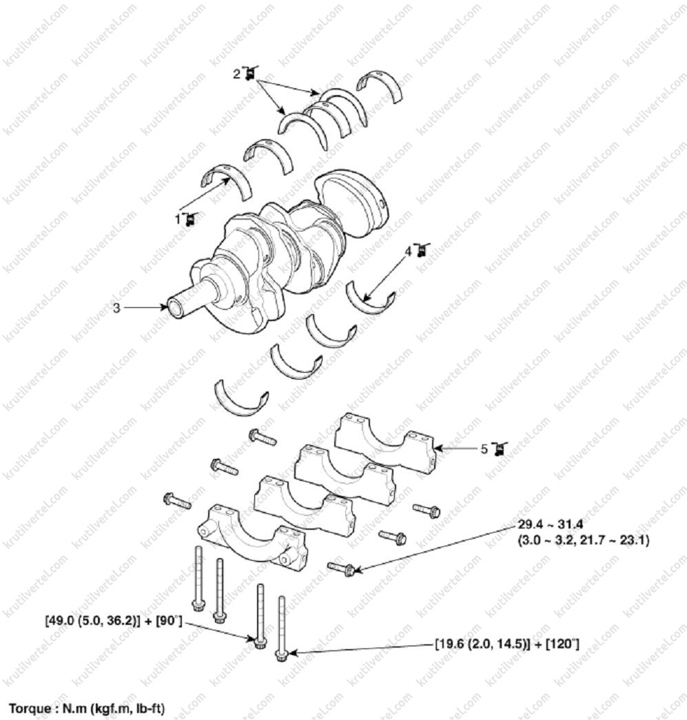 - Нижні вклади шикорених підшипників колінчатого.