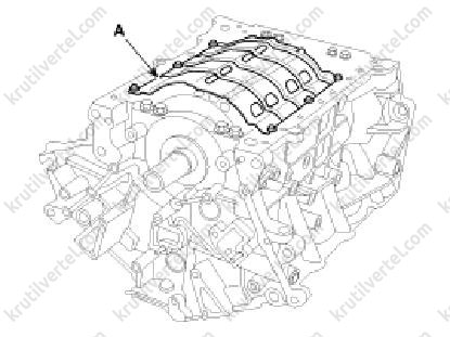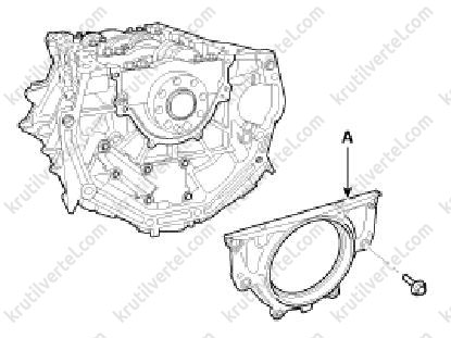 8. Встановити корпус заднього сальника колінчастого валу (А).