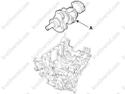 3. Помістити колінчастий вал (А) у блок циліндрів.