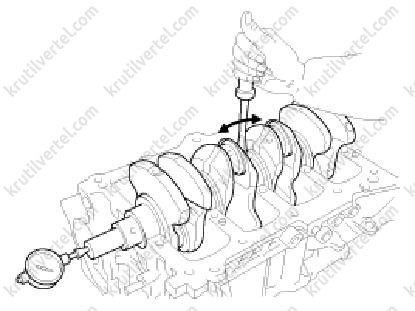 За допомогою індикатора годинного типу виміряти осьовий люфт, переміщуючи колінчастий вал вперед-назад за допомогою викрутки.