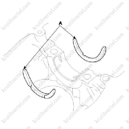 2. Встановити два наполегливі півкільця (А) з обох сторін третьої корінної опори блоку циліндрів масляними канавками назовні.