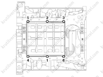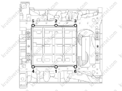 - Встановити та рівномірно затягнути болти кришок підшипників за кілька підходів у вказаній на малюнку послідовності.