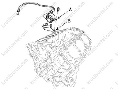18. Зняти кришку отвору для зливу оливи (А) з прокладкою (В).