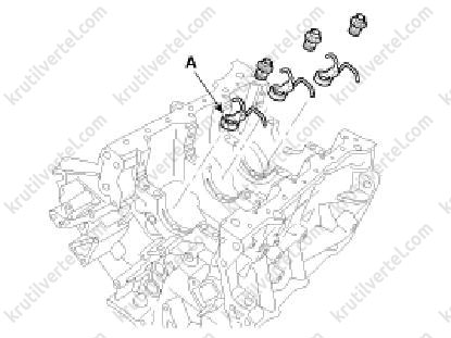 1. Встановити масляні форсунки для охолодження поршнів (А).
