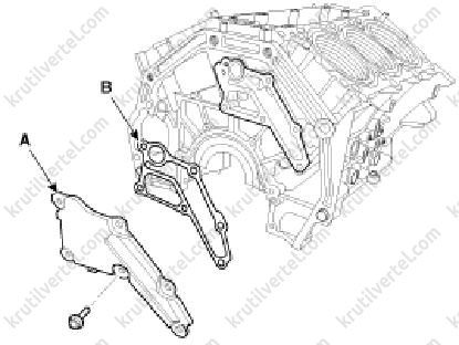 26. Зняти олійну кришку (А) з прокладкою (В).