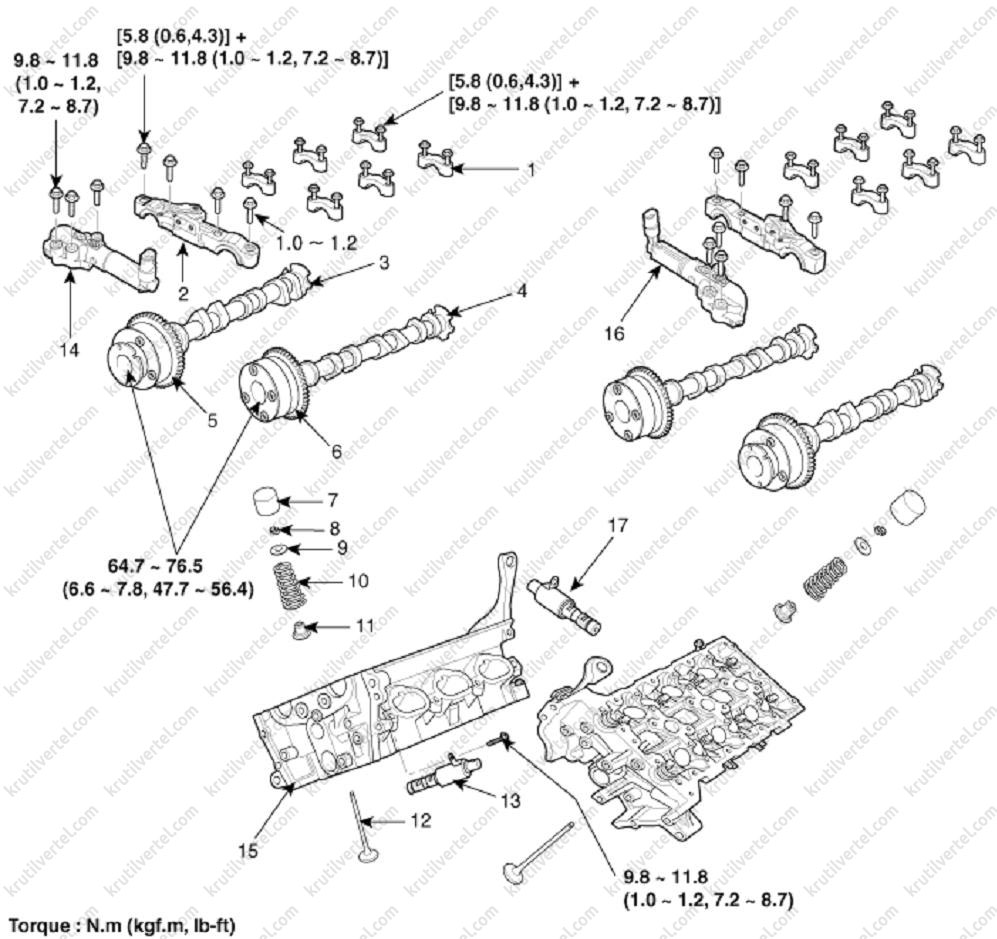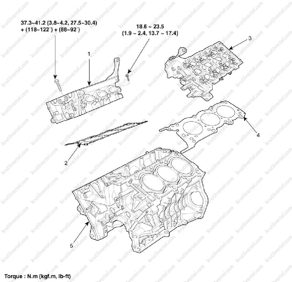 Момент затяжки: 37.3 ~ 41.2 Н · м + 118 ~ 122 ° + 88 ~ 92 °.