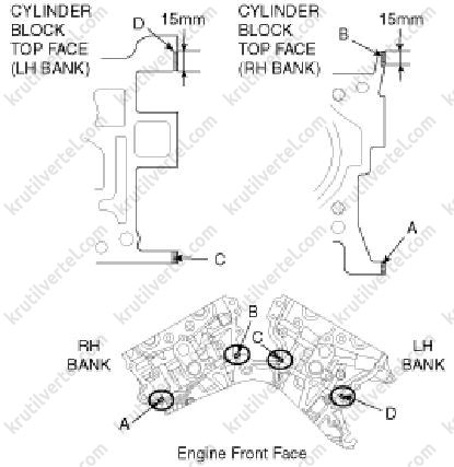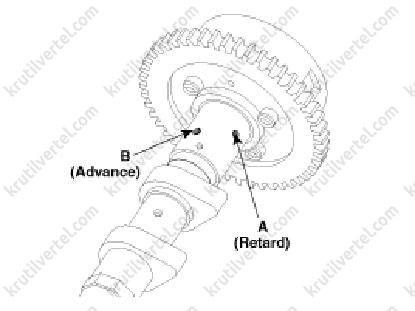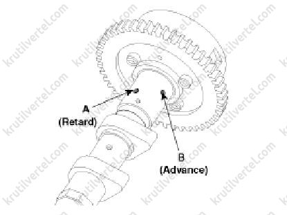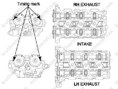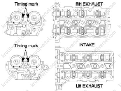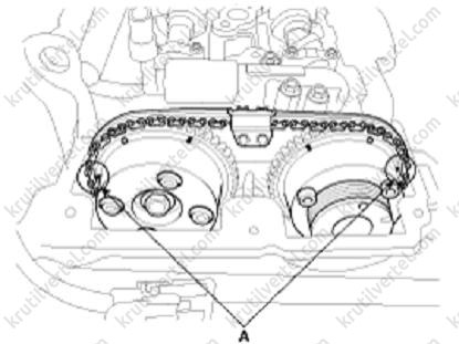 Перед зняттям ланцюга приводу газорозподільного механізму помітити ланки правого/лівого приводних ланцюгів щодо міток на зірочках, оскільки заводські настановні мітки на ланцюгах можуть стиратися.