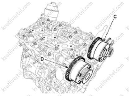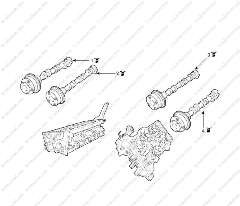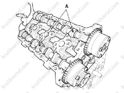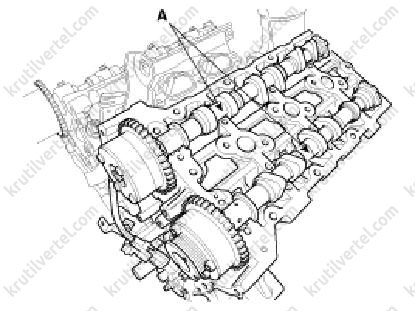 - Зняти розподільні вали (А) з головки блоку циліндрів.