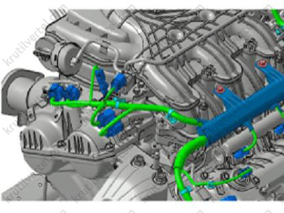 - Встановити клапан подачі оливи з роз'ємом сірого кольору на праву головку блоку циліндрів.