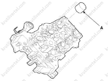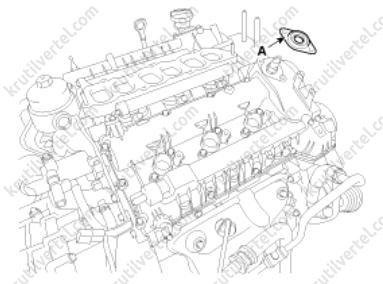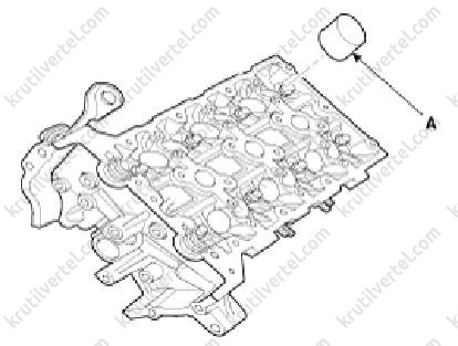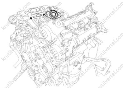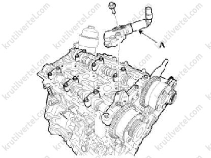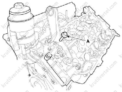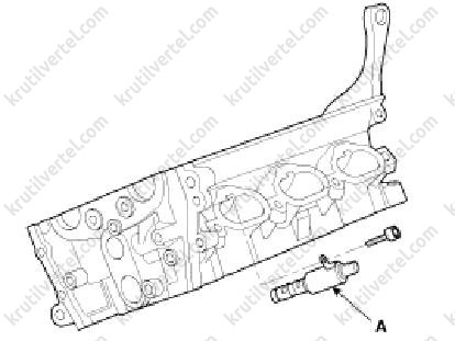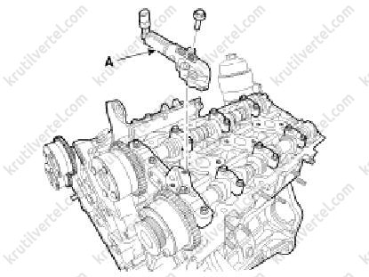 - Зняти кришку клапана подачі оливи на фазообертач лівого випускного розподільчого валу (А).
