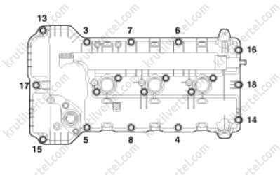 - Кришка клапана подачі оливи на фазообертач лівого випускного розподільчого валу.