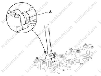 5. Нанести на поверхні штовхача клапана (А) моторне масло та встановити його в гніздо головки блоку циліндрів. Переконатись у тому, що штовхач вільно провертається вручну.