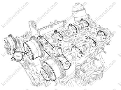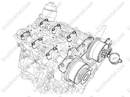 - Встановити кришки підшипників розподільних валів (див. розділ «Розподільні вали та фазообертачі» нижче в цьому розділі).