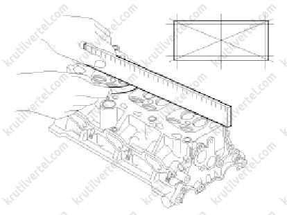 1. Використовуючи повірочну лінійку та набір плоских щупів, виміряти величину короблення поверхонь контакту головки блоку циліндрів із блоком циліндрів та колекторами.
