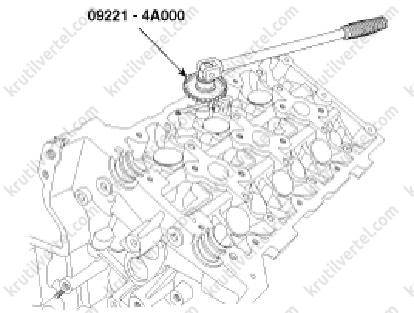 1. Використовуючи спеціальну оправку (09222-3C100), напресувати новий маслознімний ковпачок.