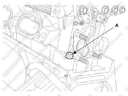 - Затягнути задній болт правої головки блоку циліндрів (А) моментом 18.6 ~ 23.5Н·м.