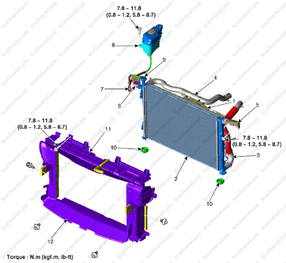 схема системи охолодження Kia Sorento, вентилятор охолодження Kia Sorento, радіатор охолодження Kia Sorento