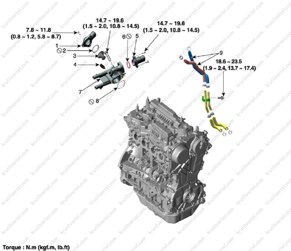 - Компоненти системи охолодження бензинових двигунів 2,4 л (G4KE та G4KJ)