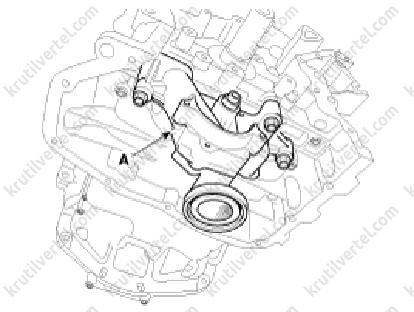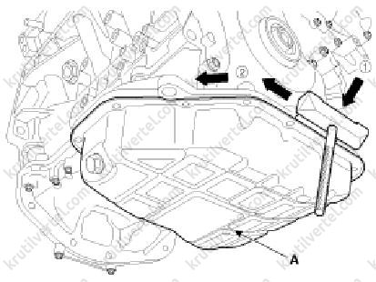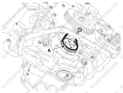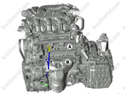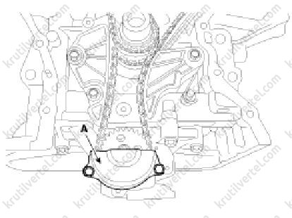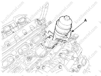 12. Відвернути болти кріплення та зняти корпус масляного фільтра (А).