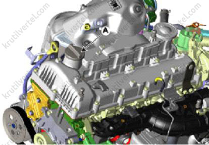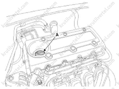 - Видалити кришку маслозаправної горловини (А).