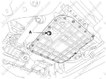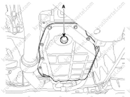 - Видалити пробку зливного отвору (А) і злити масло у відповідну ємність.