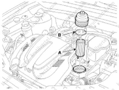 - Видалити кришку масляного фільтра (А).