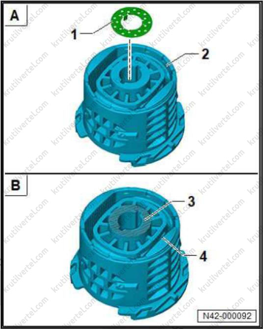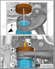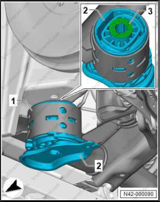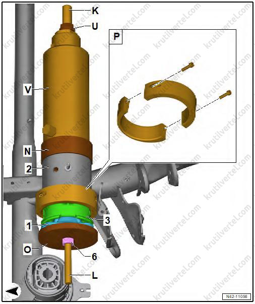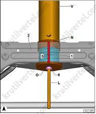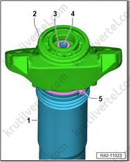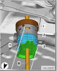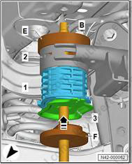 - Вставте верхнє сідло (2) між пружиною (1) та кріпленням на кузові.