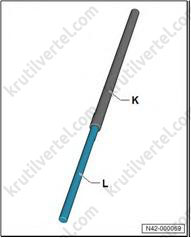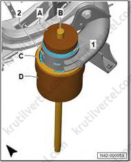 1. Встановіть інструменти з комплекту амортизатора (T10001), як показано на ілюстрації, і затягніть різьбове кріплення.